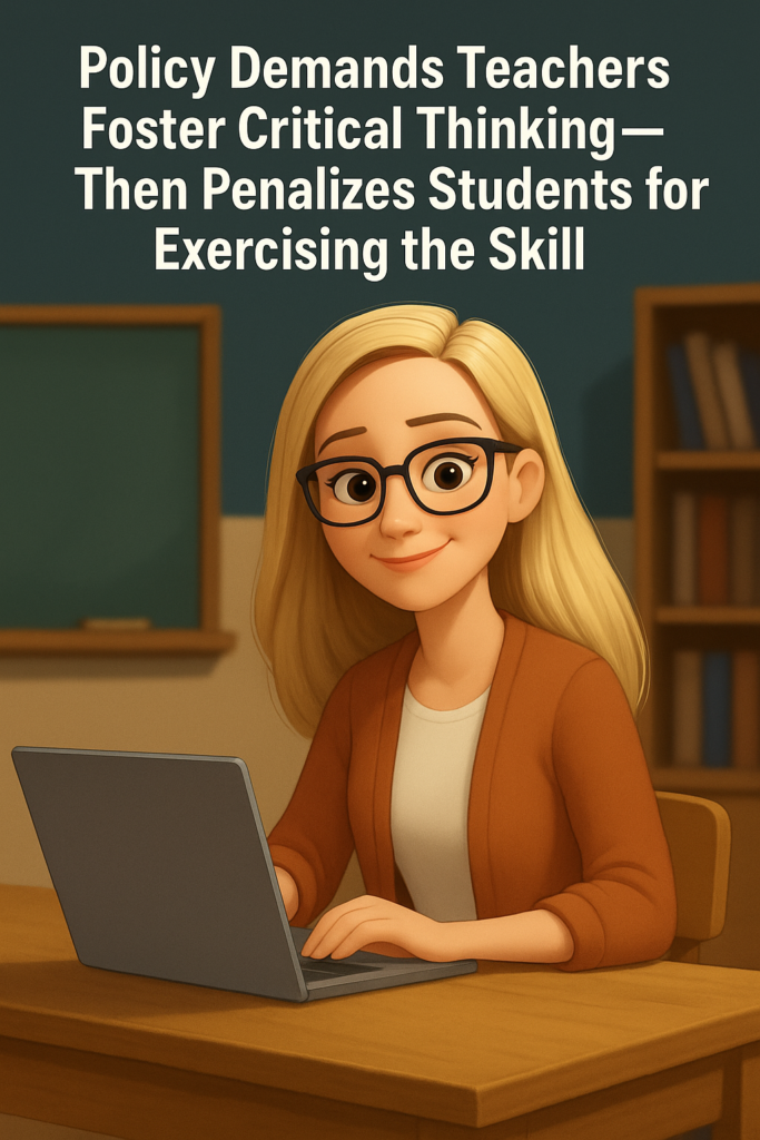 You want to hear about “innovation” in the classroom—while forcing us to teach like it’s 1998. You want to fund AI initiatives—while judging our performance on tests that a robot could ace in five seconds flat. You want teachers to raise thinkers—but measure us by how well our students follow instructions.