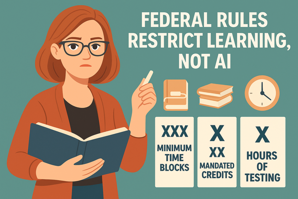 You say “use AI to create authentic learning,” but the state still requires me to measure learning using tightly scripted, grade-locked, scantron-friendly content. You can’t build future-ready classrooms when the definition of “success” is still a multiple-choice test.